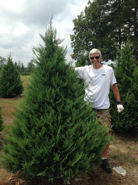 Grand Champion Tree being selected from the farm, one day before the SCTA's Annual Meeting and Christmas Tree Contest. The event was held in Birmingham, Alabama on August 2, 2014.