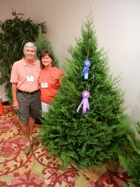 Frank & Lucie Wadsworth next to their "Grand Champion" 7 foot - Murray Cypress Christmas Tree